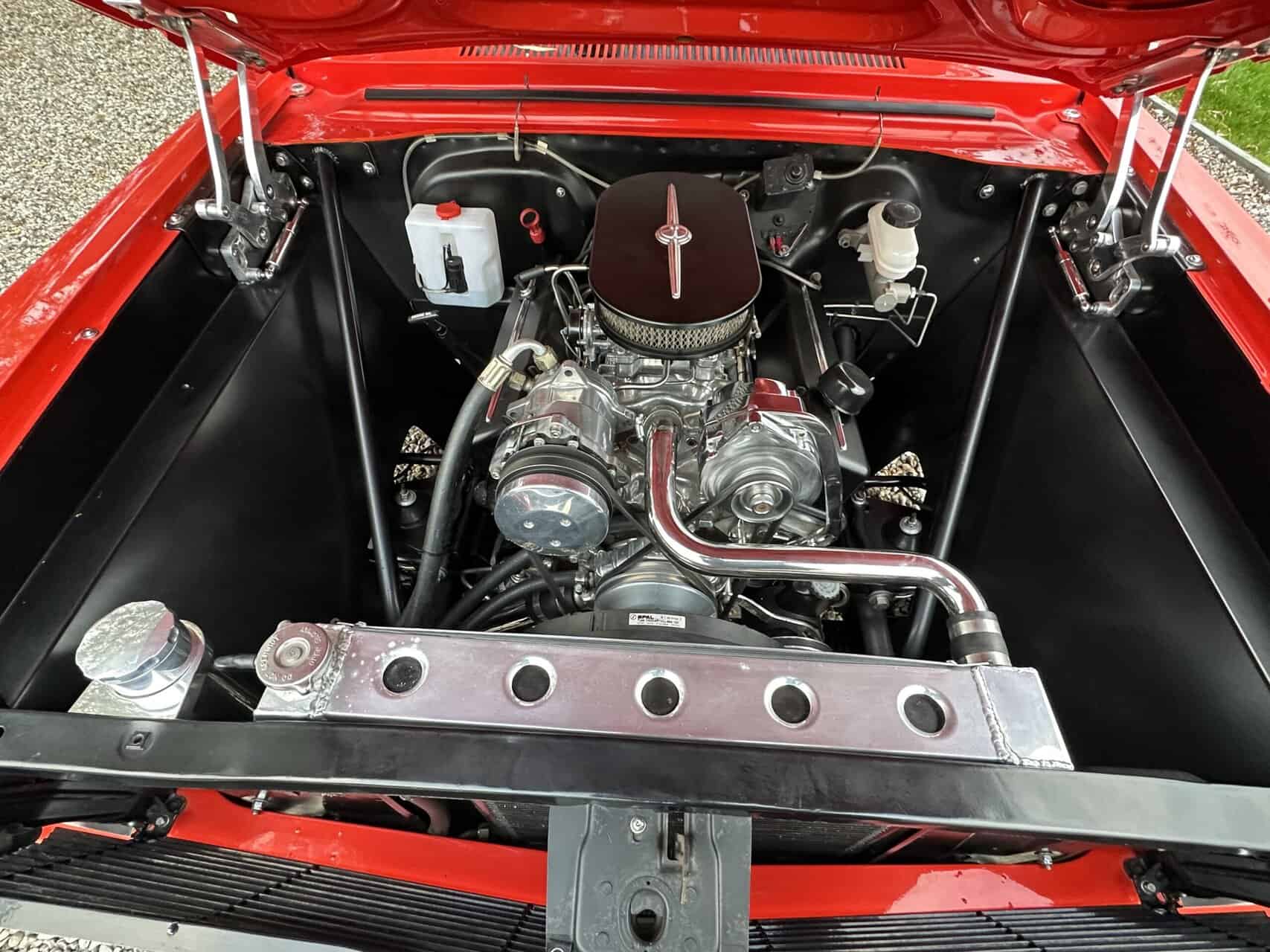 Finished in PPG Custom Orange with Black Leather trimed SS bucket front seats , SS rear seat cover , SS door panels , Custom Auto Sound Hidden Auto radio , Custom under dash panels , Custom dash trim , Custom gauge cluster , All new glass , All new window, door, trunk rubbers , ldidit steering column , Billet Specialities steering wheel , Vintage Air AC and heating ….
