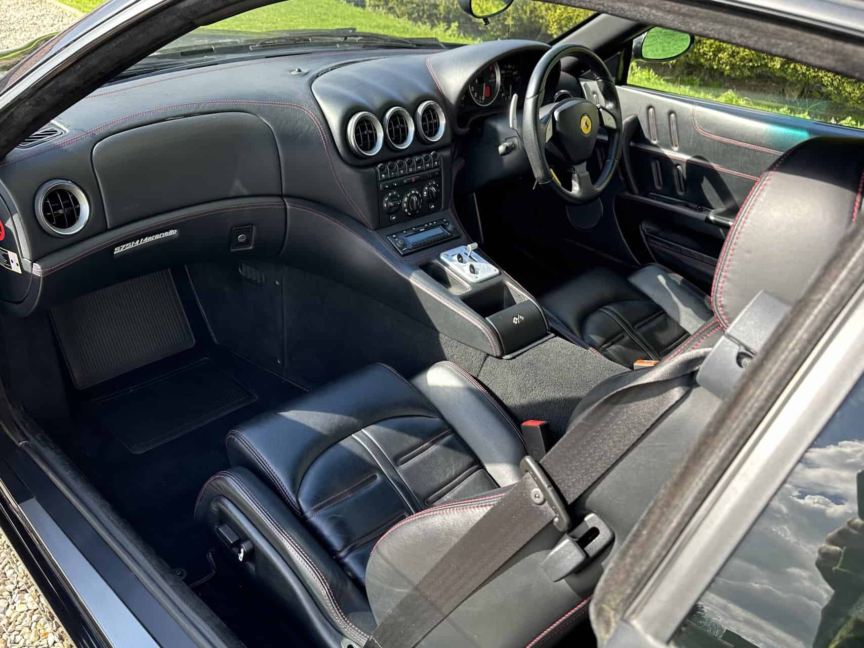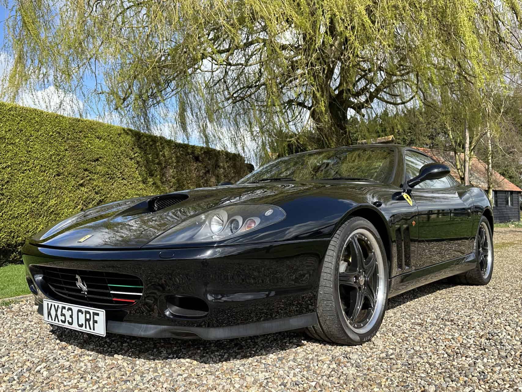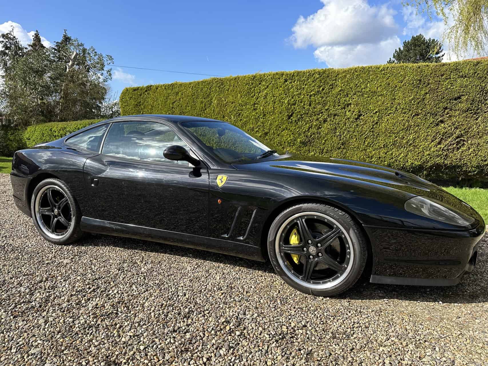 Ferrari 575 Maranello for sale in immaculate condition with a lovely history file. This car came to us as a part exchange. It was in a car collection and the previous owner put it in against another vehicle we sourced for him. It has covered just 37,000 miles. We have all of the MOT history along with lots of service invoices which back up the stamps in the book. A very very nice example. Runs and drives perfectly. No issues what so ever. We have all of the book packs, V5, 2 keys with 2 key fobs. The car is finished in metallic black, with black seats, crested headrests and red stitching. Full electric memory seats, Xenon headlamps, 2 piece alloy wheels professionally powder coated to factory specification. If you are looking for a 575M then look no further! We welcome any part exchange. If you would like to see a video of this car please call Rob on 07730979259