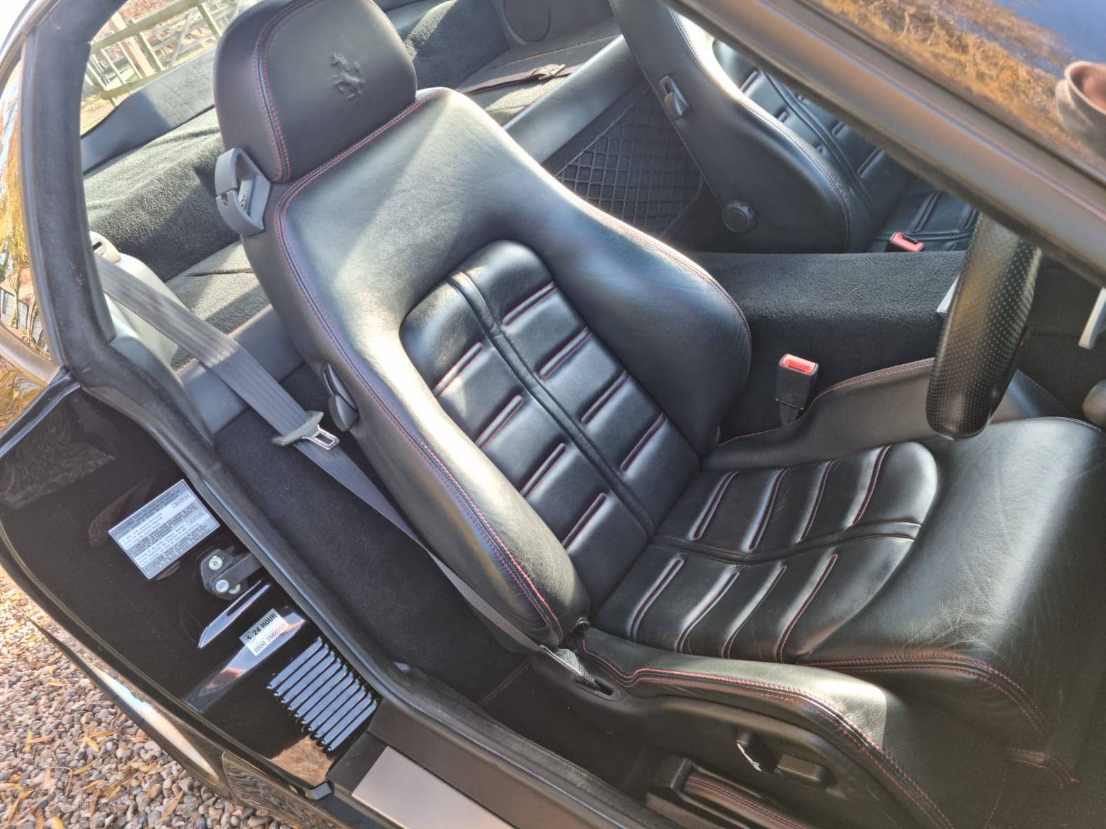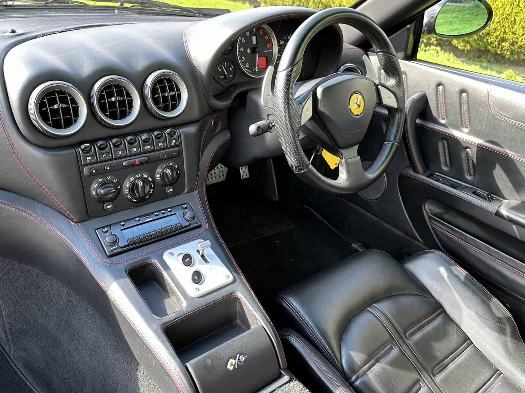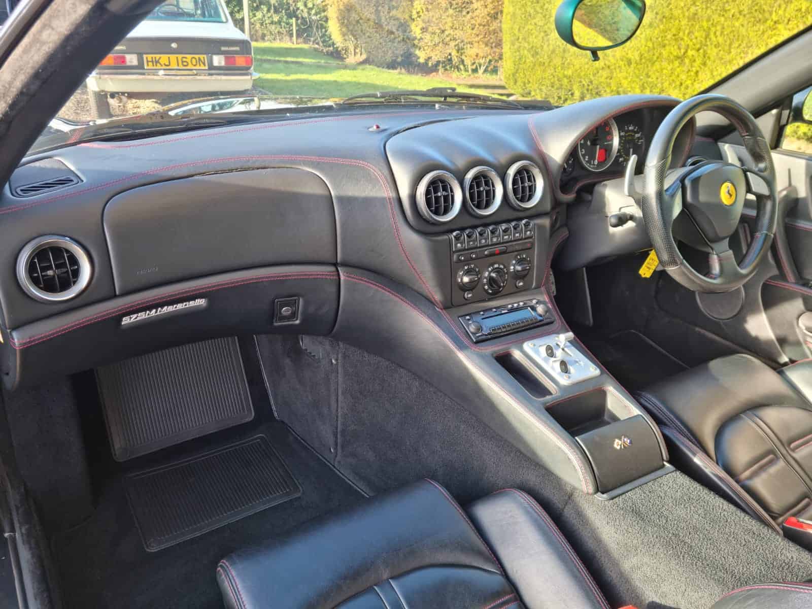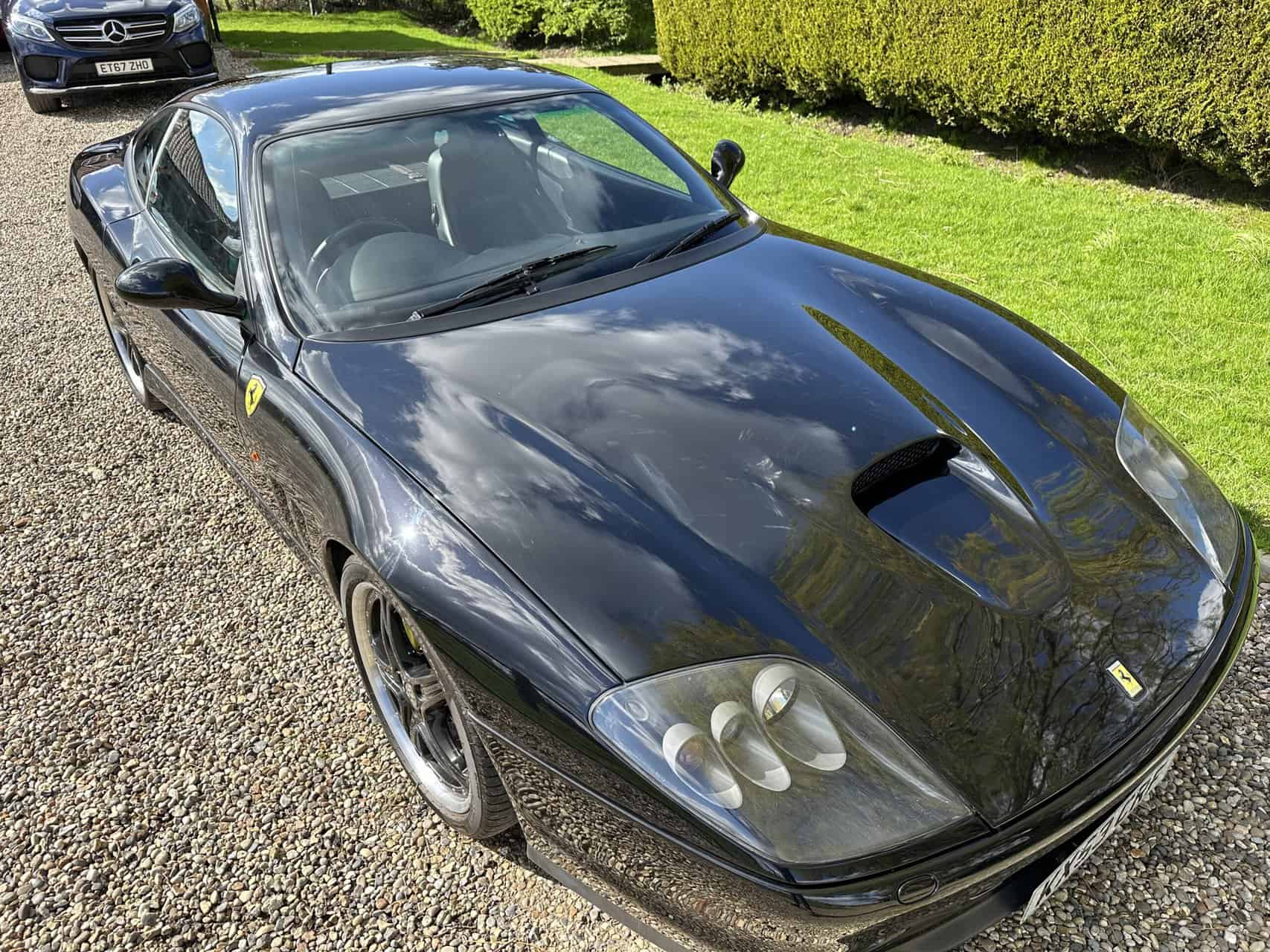Ferrari 575 Maranello for sale in immaculate condition with a lovely history file. This car came to us as a part exchange. It was in a car collection and the previous owner put it in against another vehicle we sourced for him. It has covered just 37,000 miles. We have all of the MOT history along with lots of service invoices which back up the stamps in the book. A very very nice example. Runs and drives perfectly. No issues what so ever. We have all of the book packs, V5, 2 keys with 2 key fobs. The car is finished in metallic black, with black seats, crested headrests and red stitching. Full electric memory seats, Xenon headlamps, 2 piece alloy wheels professionally powder coated to factory specification. If you are looking for a 575M then look no further! We welcome any part exchange. If you would like to see a video of this car please call Rob on 07730979259