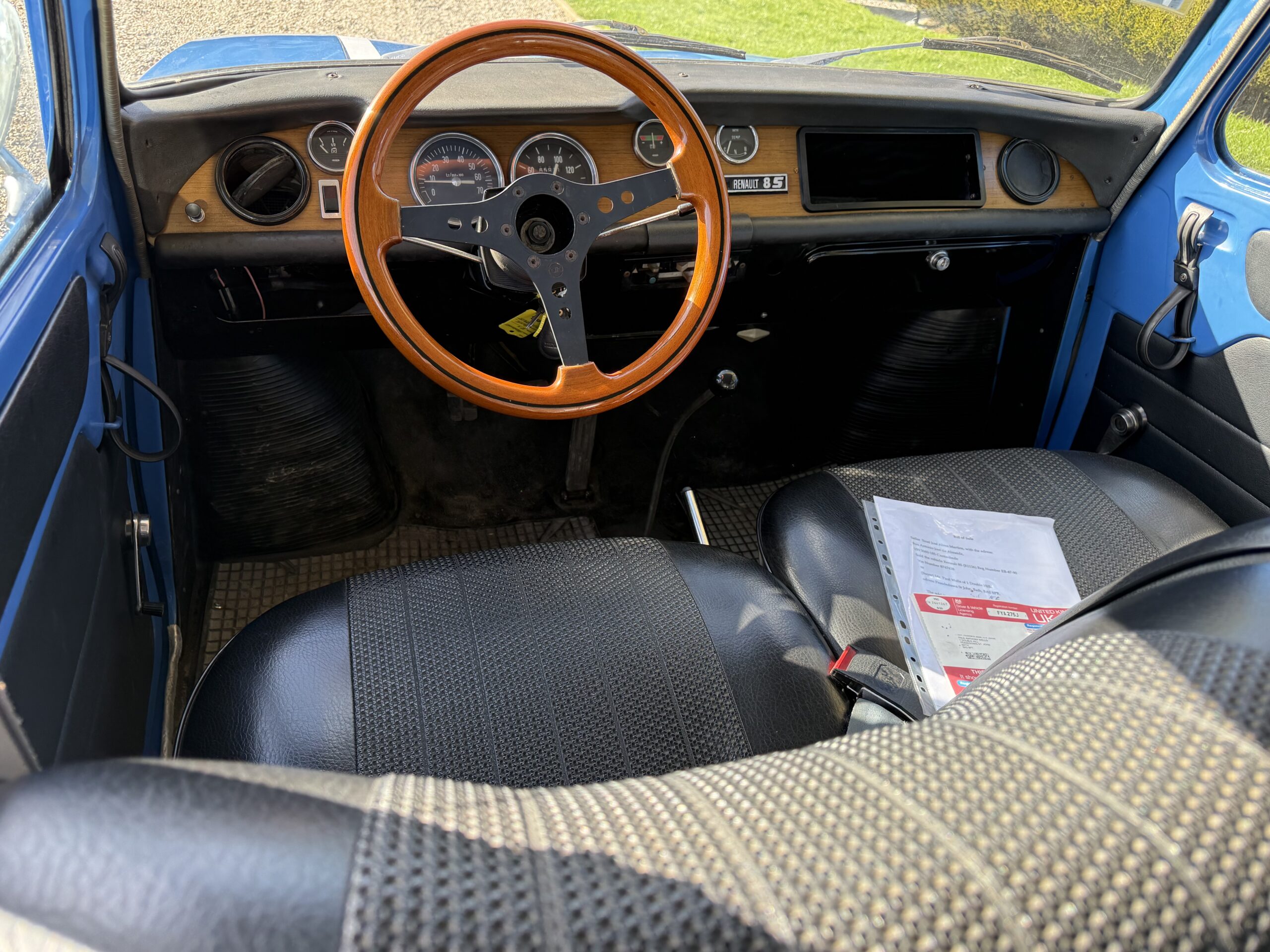 This stunning example has been attractively prepared in the style of the iconic Gordini rally cars, finished in the evocative French Racing Blue livery with contrasting twin white stripes and complemented by quad headlamps. It sits on a set of period ‘Cosmic’ alloy wheels, colour-coded to the body and shod with goodyear tyres, they give the car an unmistakably authentic competition-inspired appearance.